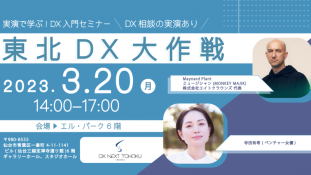 2023/ 03/20 (月) 14:00 終了しました 無料オンライン&リアル 【動画公開中】東北DX大作戦2023 オンライン & 仙台市青葉区一番町4丁目11−1 141ビル(仙台三越定禅寺通り館)6階 エル・パーク仙台 ギャラリーホール Googleカレンダーに登録